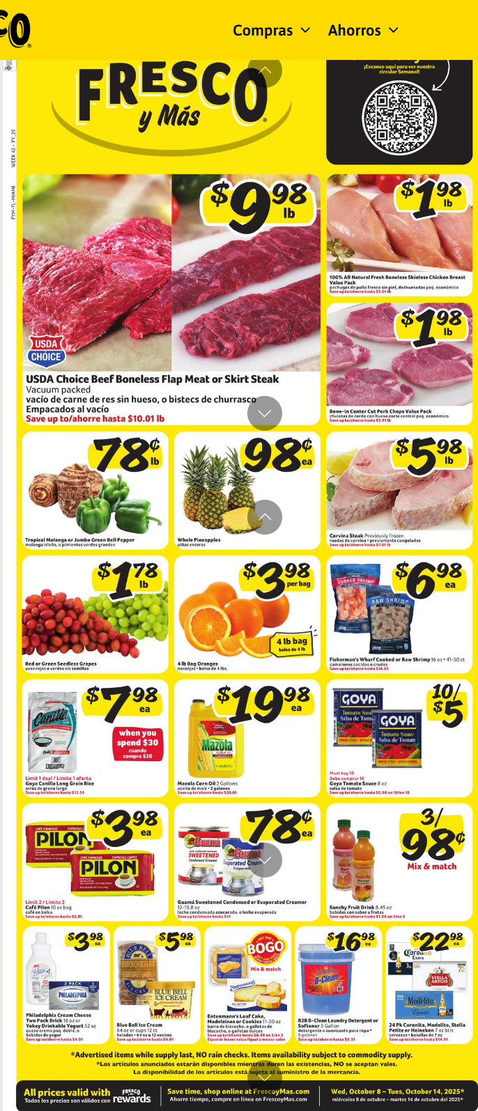 Looking to save money on your next grocery trip? The Fresco Mas weekly ad for 8-14 oct, 2025 is packed with fresh deals and big savings. Each week, you’ll find discounts on meat, produce, pantry items, and more. Check out the latest flyer to plan your shopping ahead. Don't miss out on BOGO offers, digital coupons, and low-price finds across all departments.